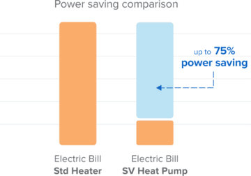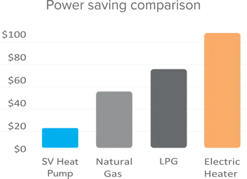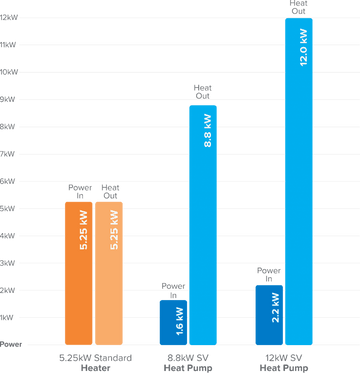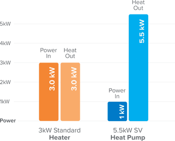 Een traditionele elektrische kachel zet 1 kilowatt elektriciteit om in 1 kilowatt warmte. Maar onze SV-serie warmtepompen gaan veel verder! Ze produceren tot 5,5 kilowatt warmte voor elke 1 kilowatt elektriciteit. Dat betekent dat u 4,5 kilowatt gratis warmte krijgt!